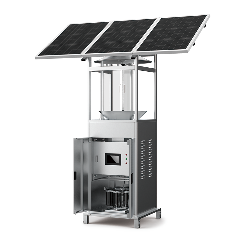 太陽(yáng)能自動(dòng)蟲(chóng)情測(cè)報(bào)燈專為農(nóng)林蟲(chóng)情測(cè)報(bào)而研制,該燈利用現(xiàn)代光、電、數(shù)控技術(shù),實(shí)現(xiàn)了蟲(chóng)體遠(yuǎn)紅外自動(dòng)處理、接蟲(chóng)瓶自動(dòng)轉(zhuǎn)換、整燈自動(dòng)運(yùn)行等功能。在無(wú)人監(jiān)管的情況下,能自動(dòng)完成誘蟲(chóng)、殺蟲(chóng)、收集、分裝、排水等系統(tǒng)作業(yè)??稍鲈O(shè)風(fēng)速風(fēng)向、環(huán)境溫濕度、光照等多種傳感器接口,并可通過(guò)GPRS上傳數(shù)據(jù),以監(jiān)測(cè)環(huán)境與病蟲(chóng)害之間的關(guān)系。廣泛應(yīng)用于:農(nóng)業(yè)、林業(yè)、牧業(yè)、蔬菜、煙草、茶葉、藥材、園林、果園、城鎮(zhèn)綠化、檢疫等領(lǐng)域。