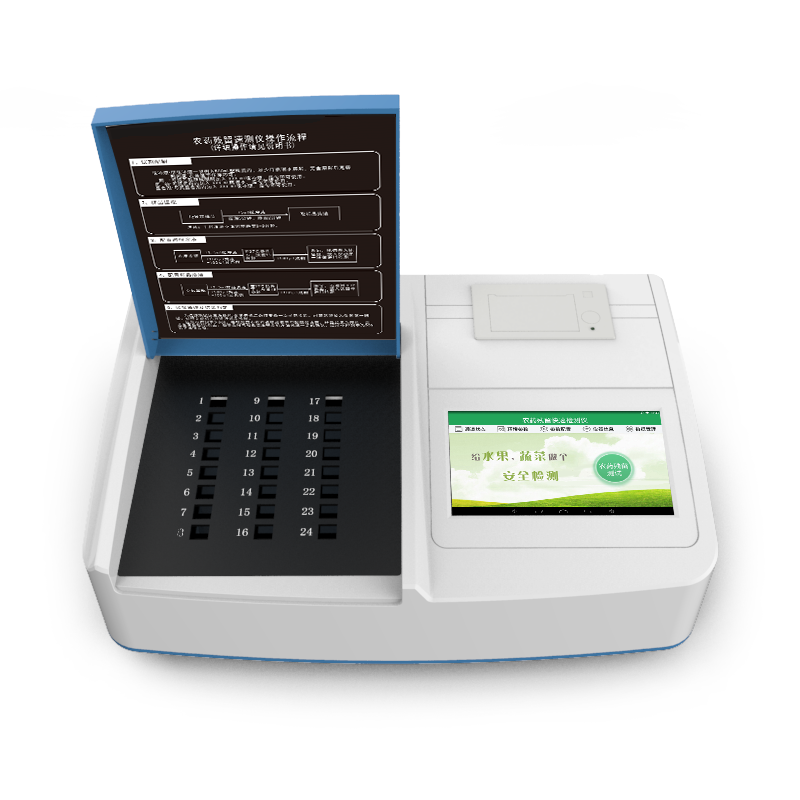 農(nóng)藥殘留檢測儀根據(jù)國家標準GB/T5009.199-2003研制,主要用于蔬菜、水果、茶葉、糧食、水及土壤中有機磷和氨基甲酸酯類農(nóng)藥的快速檢測,特別適用于各級食品安全檢測機構(gòu)實驗室及現(xiàn)場執(zhí)法使用,此外還可用于果蔬茶生產(chǎn)基地和農(nóng)貿(mào)批發(fā)銷售市場現(xiàn)場檢測,餐館、食堂、家庭果蔬加工前的安全速測等。