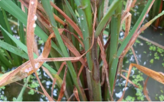 2. 氣象因素高溫、高濕有利于紋枯病的發(fā)生。當(dāng)日平均氣溫穩(wěn)定在22°C、水稻處于分藥期時(shí),田間開(kāi)始零星發(fā)病。我國(guó)各稻區(qū)主要發(fā)病時(shí)期有所不同。常年情況下,東南和西南稻區(qū)各季水稻生育期均適合病害發(fā)生,出現(xiàn)多次發(fā)病高峰;華南稻區(qū)早稻發(fā)病高峰為5?6月,晚稻為9?10月;北方單季稻區(qū)在7月下旬至8月下旬雨季時(shí)病害發(fā)生嚴(yán)重;長(zhǎng)江中下游地區(qū)初夏氣溫偏高,盛夏多雨,氣溫偏低,紋枯病發(fā)生嚴(yán)重,早稻發(fā)病高峰在6月中旬至7月上旬,中、晚稻發(fā)病高峰在8月下旬至9月下旬。