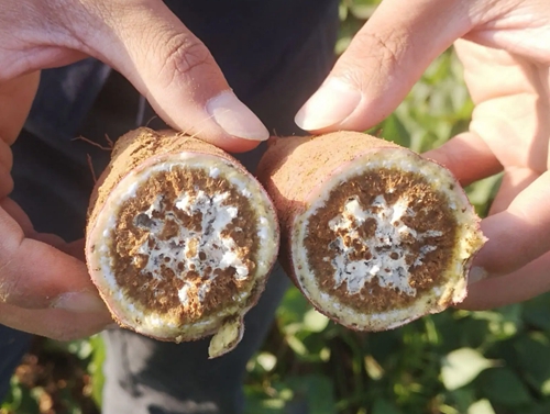 3. 混合型嚴(yán)重發(fā)病時(shí),糠心和糠皮兩種癥狀可以在同一薯塊上發(fā)生,呈混合型。