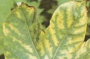 1.黃色網(wǎng)紋型 子葉或真葉葉脈變黃,葉肉仍保持綠色,形成黃色網(wǎng)紋狀。隨著病情加重, 葉片逐漸萎薦,最后枯死、脫落。