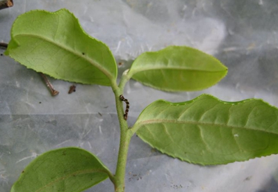 茶用克尺蠖卵歷期(N)與氣溫(T)高低密切相關(guān)。N=23.57 —0.58T。廣東省農(nóng)業(yè)科學院茶葉研究所報道(1985),卵期發(fā)育起點溫度C=13.35℃,有效積溫K = 86.64℃,關(guān)系式: y= 13.35 + 86.64x。