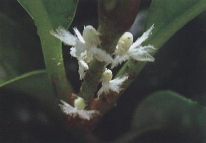 若蟲共4齡。初孵若蟲比較活潑,在茶蓬下陰處嫩葉背面取食活動(dòng),一、二齡若蟲喜群聚在徒長(zhǎng)枝或中、下部嫩枝取食,一處常達(dá)10余頭到數(shù)十頭。三、四齡若蟲逐漸分散并向茶叢中、上部枝上轉(zhuǎn)移,一枝上三四頭固著刺吸,而新芽梢上卻很少。若蟲每次蛻皮前遷移到葉背,蛻皮后又爬至嫩梢固定取食,并分泌白色絮狀物,逐漸將蟲體覆蓋,外觀像一堆棉絮狀物。若蟲善跳,受驚即彈跳逃逸,常留下白色蠟絲。