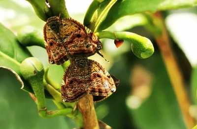可可廣翅蠟蟬以成、若蟲刺吸為害嫩梢,影響茶樹新梢生長,同時在嫩梢上殘留白蠟,引起茶樹病害的發(fā)生,且該害蟲發(fā)生期早,延續(xù)時間長,嚴重影響茶樹新梢生長,降低茶青產(chǎn)量和品質(zhì)。同時雌成蟲產(chǎn)卵于嫩梢,致使嫩梢易折,或枯萎、死亡。