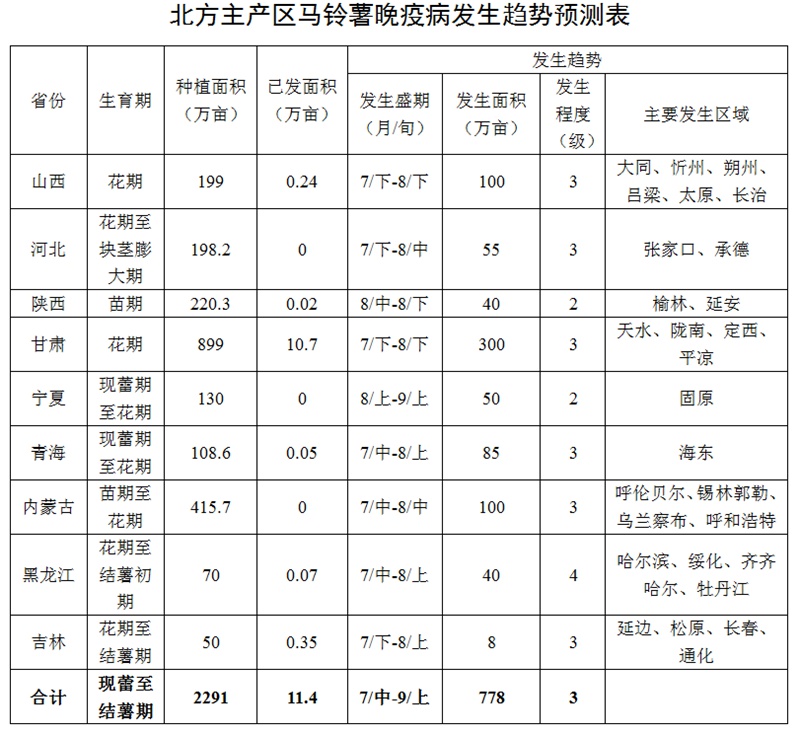 附件:北方主產(chǎn)區(qū)馬鈴薯晚疫病發(fā)生趨勢(shì)預(yù)測(cè)表